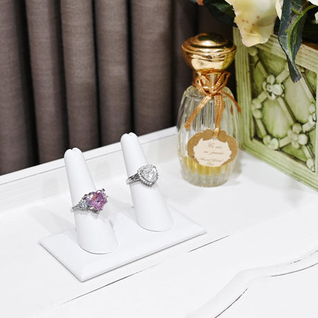 #RD-2433L-WH White Leatherette 3 Ring Finger Shaped Display