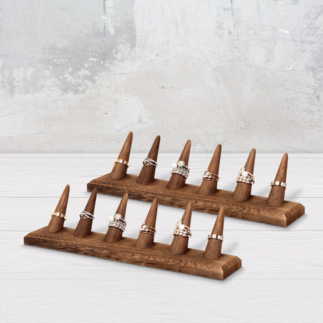 #WDT326Rx2-Wooden Finger Ring Holder Stand Jewelry Display for 6 Rings