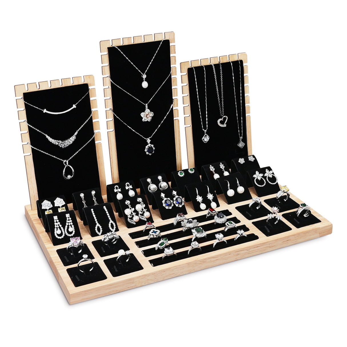 #DPS6700BK Wood Jewelry Display Set, Black Color is backordered and will ship as soon as it is back in stock.