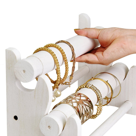 $21.00Unit price /Unavailable #WD3802 Wooden 2 Tier Bar Bracelet Bangle Jewelry Holder