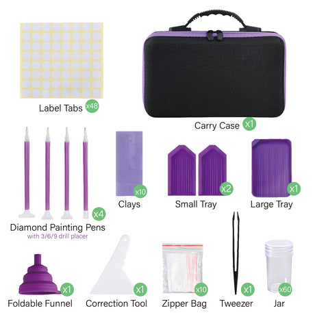 #TOOL-520 60 Slots Diamond Painting Kit with Nylon Zippered Organizer Bag