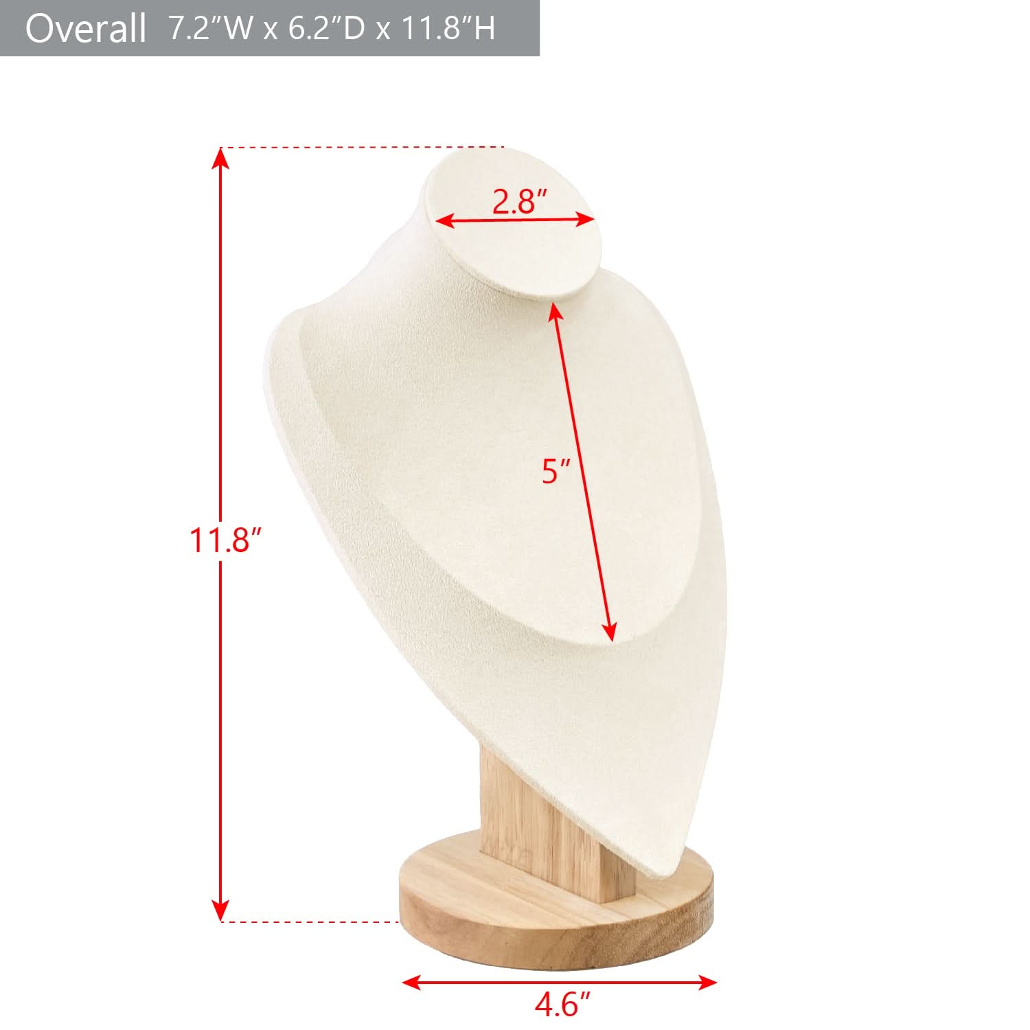- WOOD NECKLACE DISPLAY STANDS: This sturdy wooden display features a block base and a cream velvet covering. Its simple yet elegant design ensures a beautiful and effortless presentation, making it a stylish addition to any space