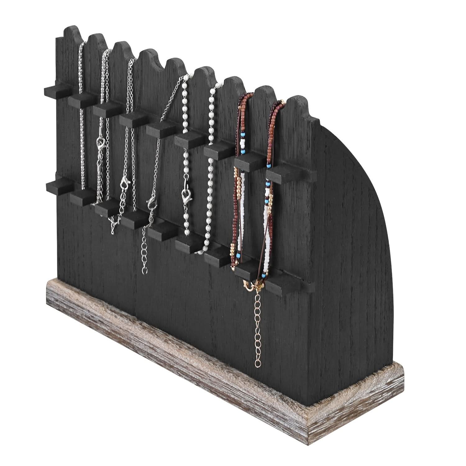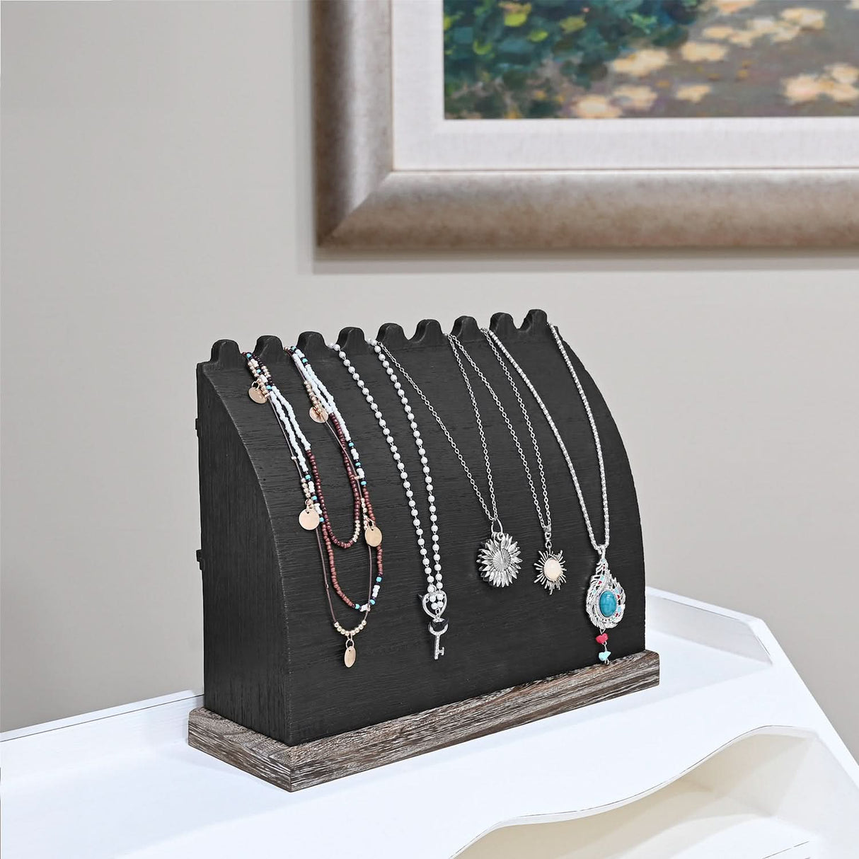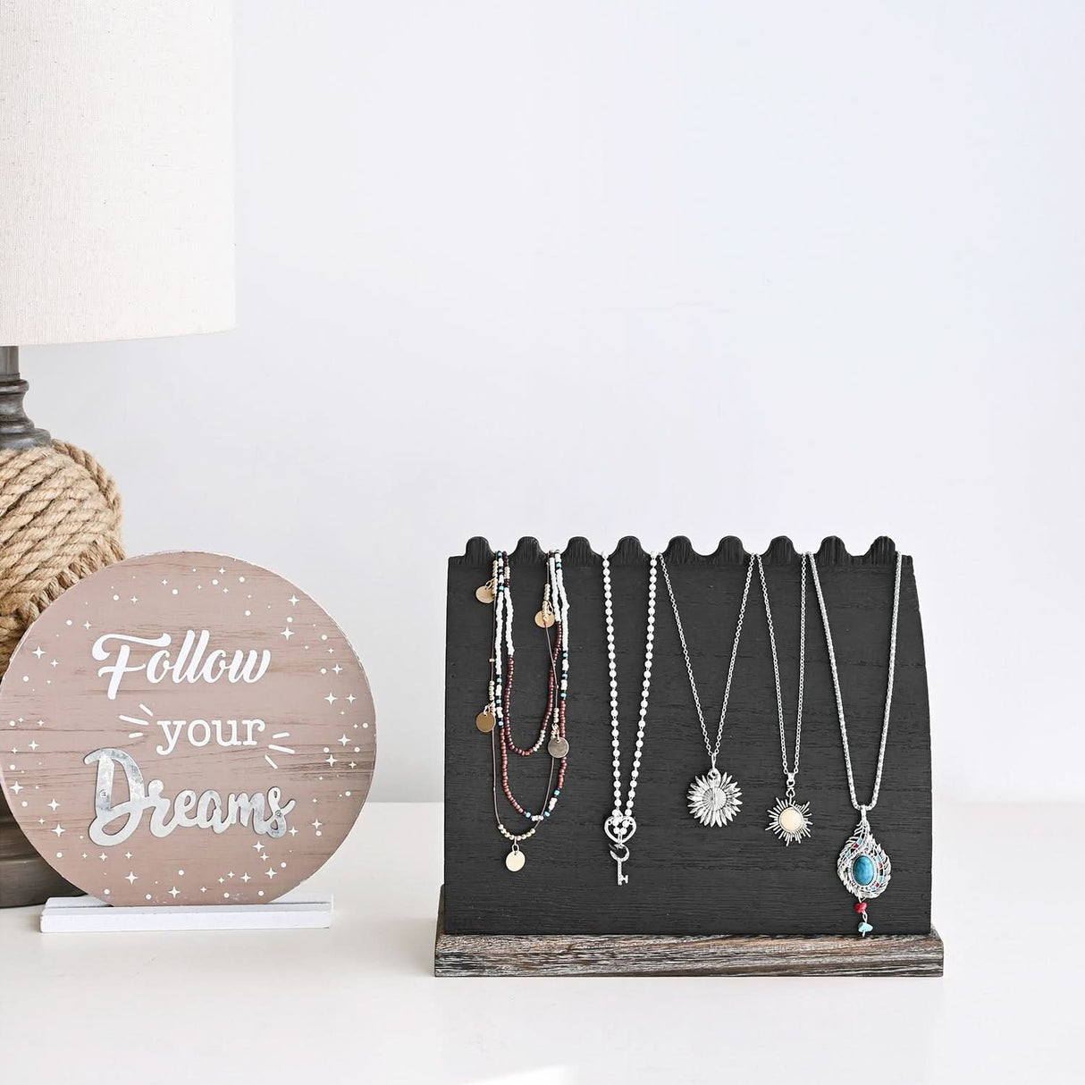 - 9 NECKLACES DISPLAY STANDS: Introducing a lightweight wooden necklace display stand, perfect for up to 9 necklaces. This stand provides an easy and elegant way to showcase your favorite necklaces or chains. Its easy setup adds unparalleled convenience to meet your display needs.