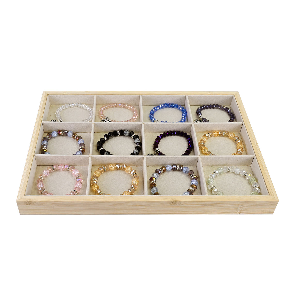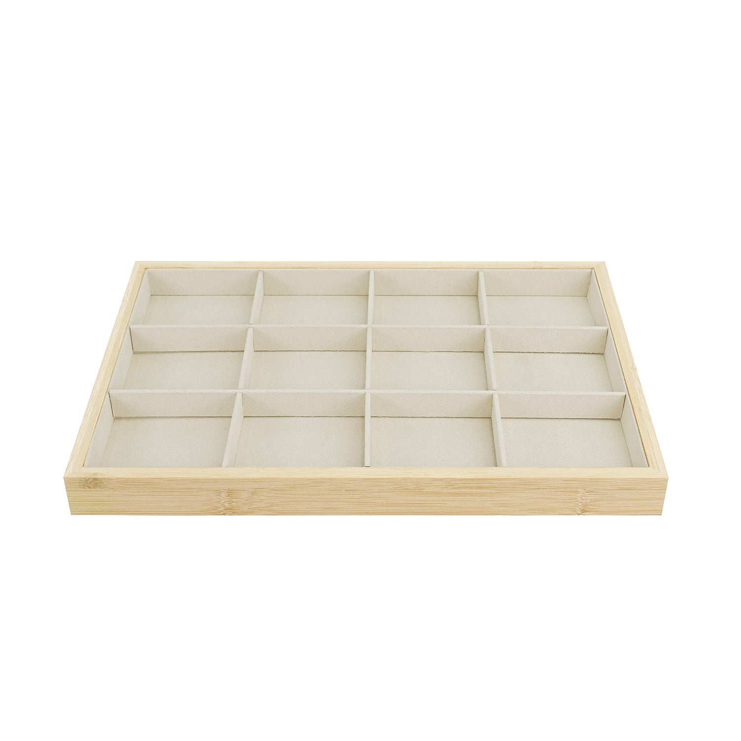 Bamboo Jewelry Tray – 12-Grid Accessory Organizer with Velvet Lining