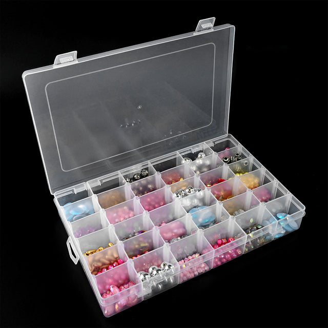 Transparent Jewelry Organizer Box for accessories – Features Compartments for Efficient Storage and Display of Jewelry and Crafts. Storage Container with Dividers for Beads, Earrings, Necklaces, Rings, Metal Parts, Accessories, Screws, and Buttons.