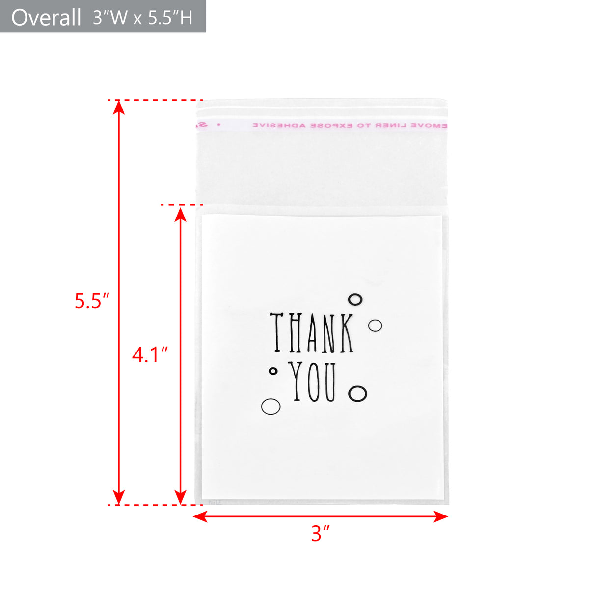 OPP Cellophane Thank You Note Bags with Adhesive Sealing Closure Great for Party Favors Candy Cookies Gift Packaging,100pcs.