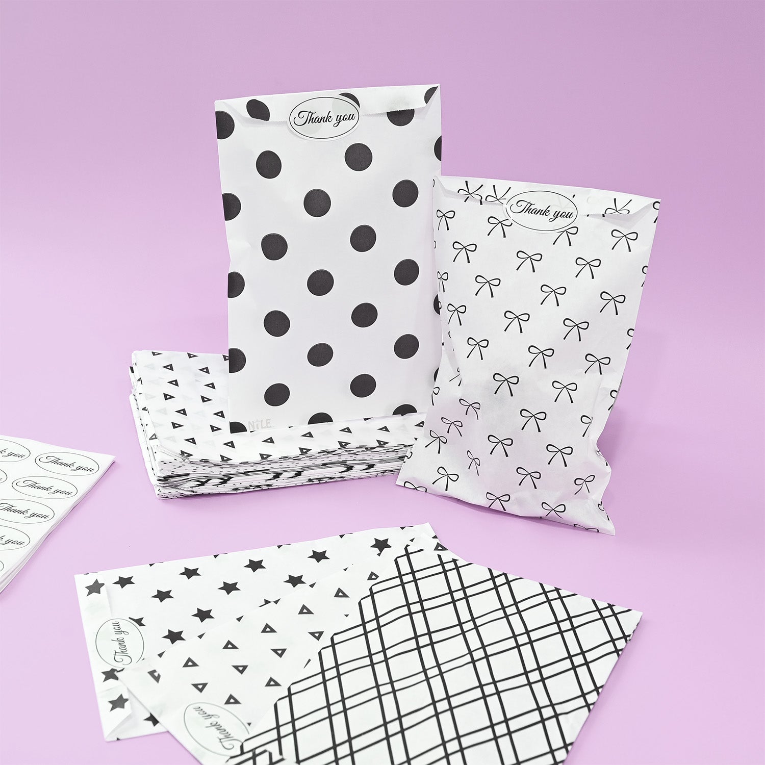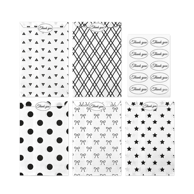 • JEWELRY GIFT BAGS - Enhance your presentations with a collection of white and black, elegantly designed small paper bags, perfect for packaging jewelry. Their sophisticated look and durable construction provide both protection and an appealing display.