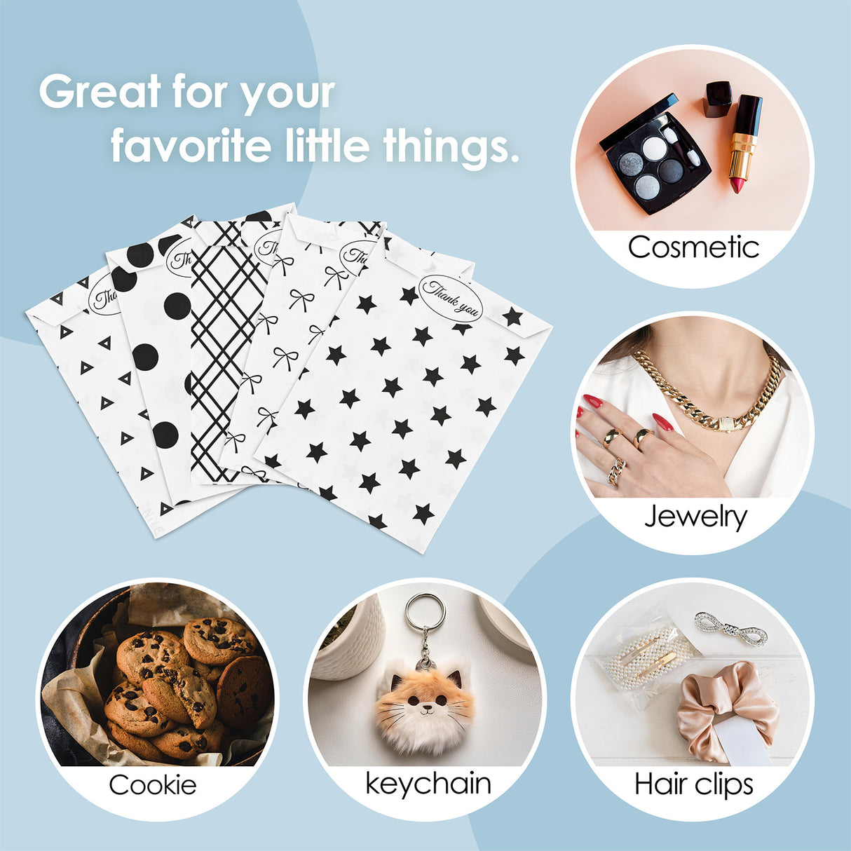 • DURABLE SMALL JEWELRY BAGS - Made from durable waxed glassine, these stylish small paper bags are perfect for holding cookies or elegantly presenting small gifts, adding a touch of sophistication to any occasion.