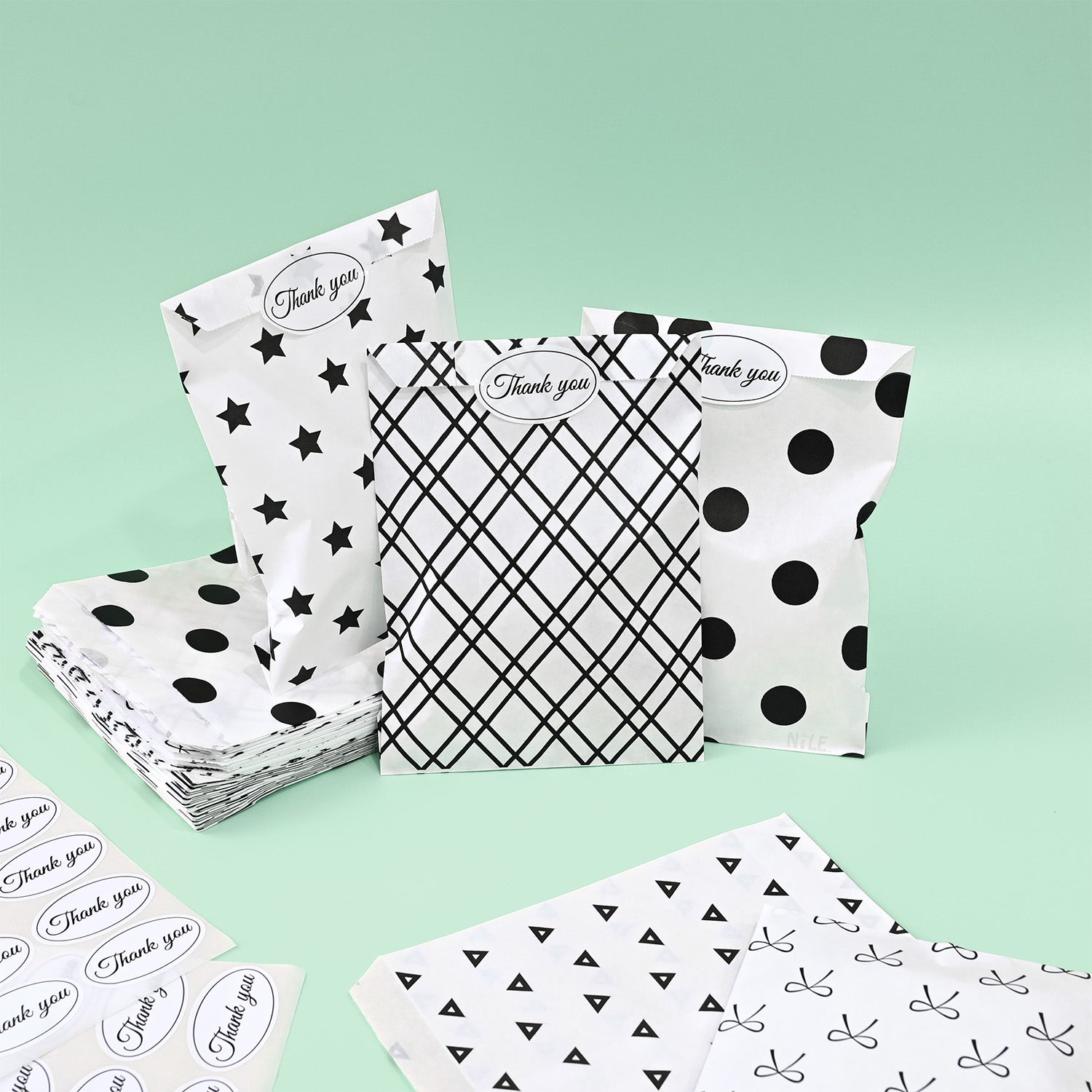 • JEWELRY GIFT BAGS - Enhance your presentations with a collection of white and black, elegantly designed small paper bags, perfect for packaging jewelry. Their sophisticated look and durable construction provide both protection and an appealing display.