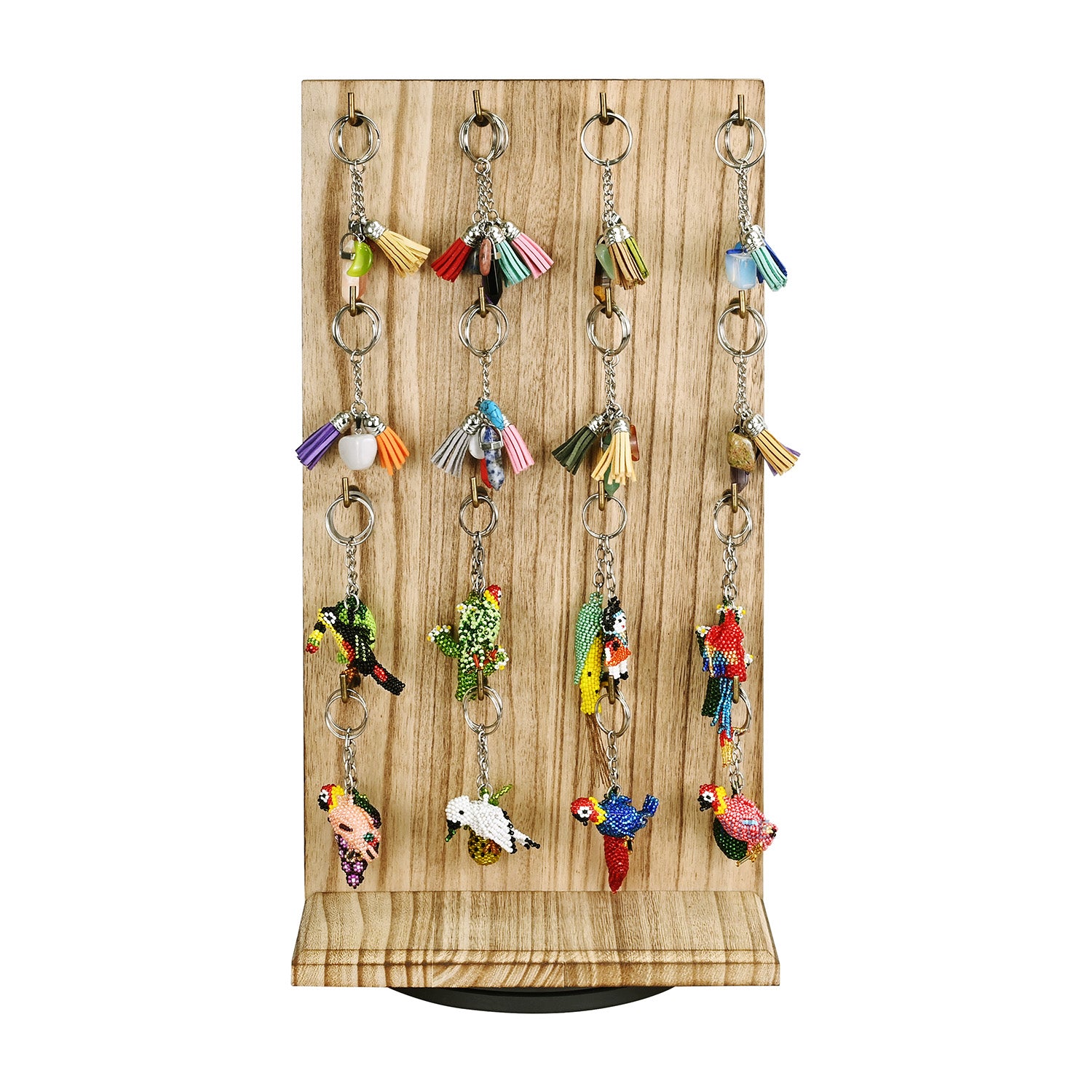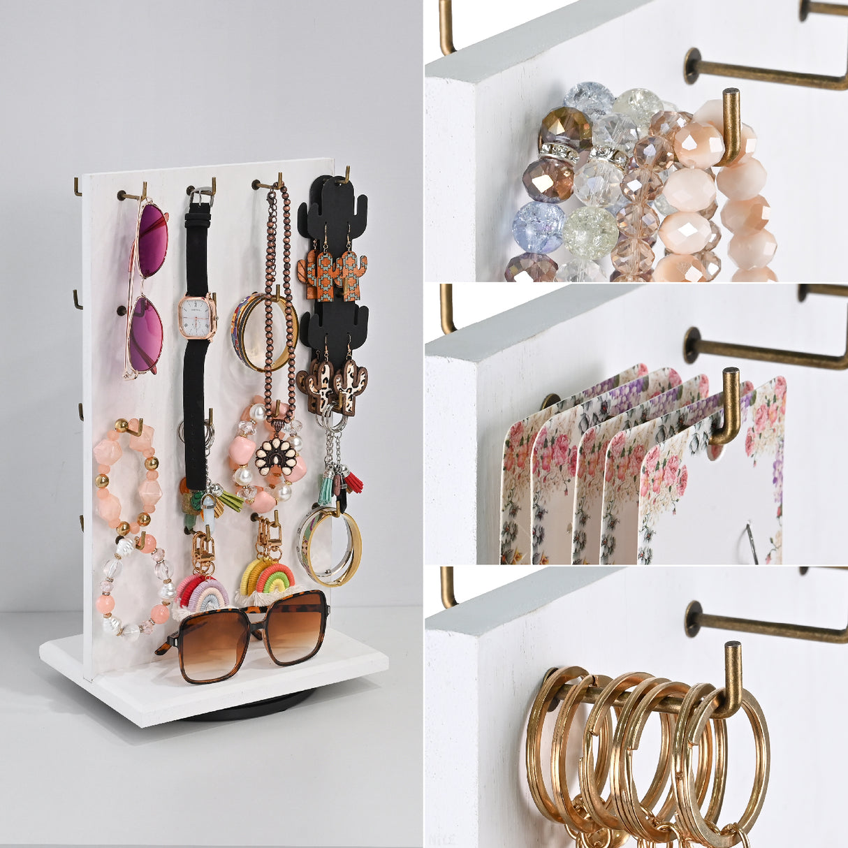 - KEYCHAINS DISPLAY - The display is equipped with 16 long hooks on both sides. The hooks are long enough to hold multiple jewelry cards, allowing you to spread out all your jewelry and accessories, a great solution to keep them tangle-free.