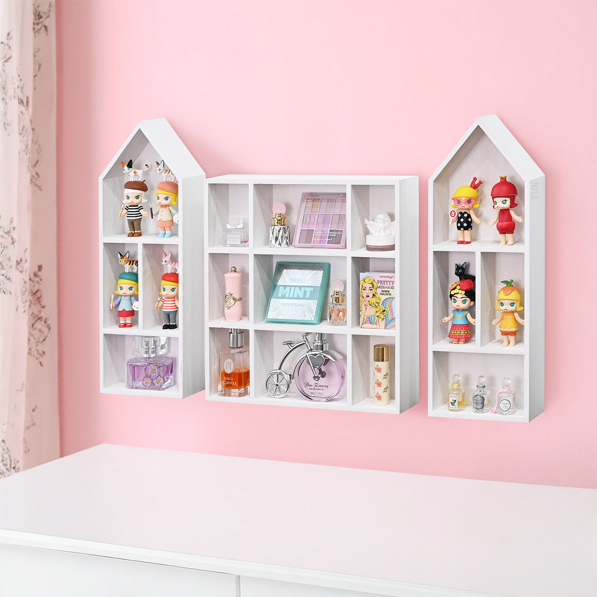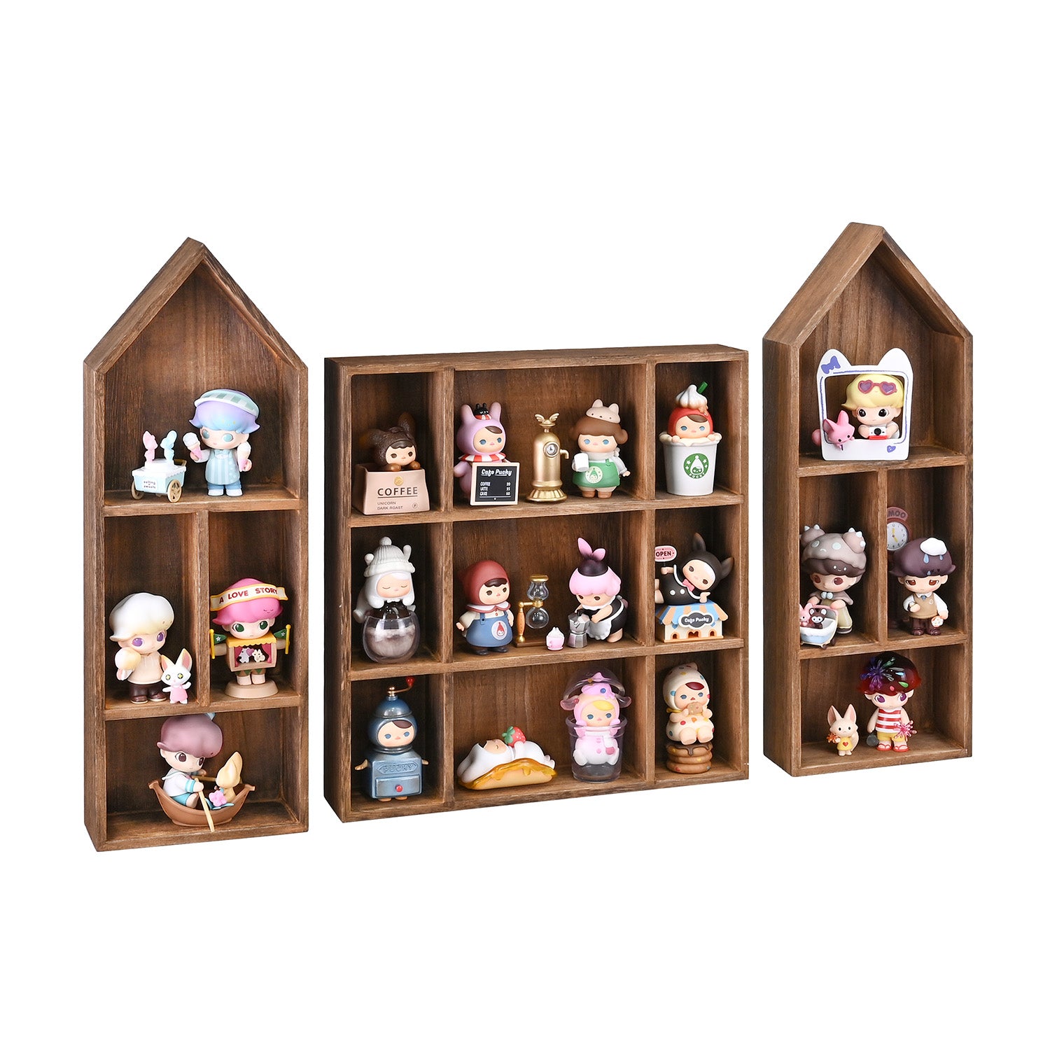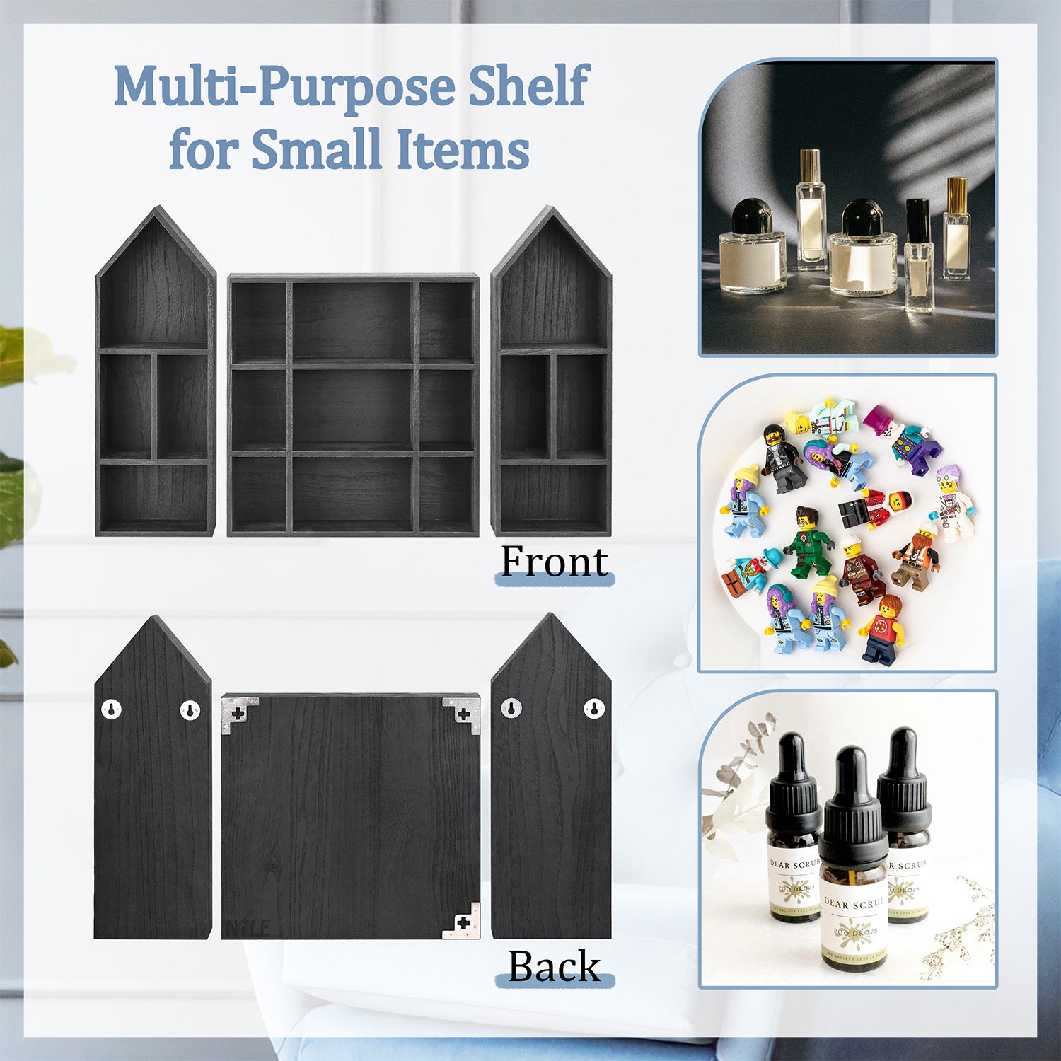- DISPLAY SHELF FOR COLLECTIBLES: This 3-piece set allows you to display your favorite miniatures, trinkets, and collectibles in style. It can be arranged together or separately and features 17 compartments in various sizes for versatile and creative arrangements