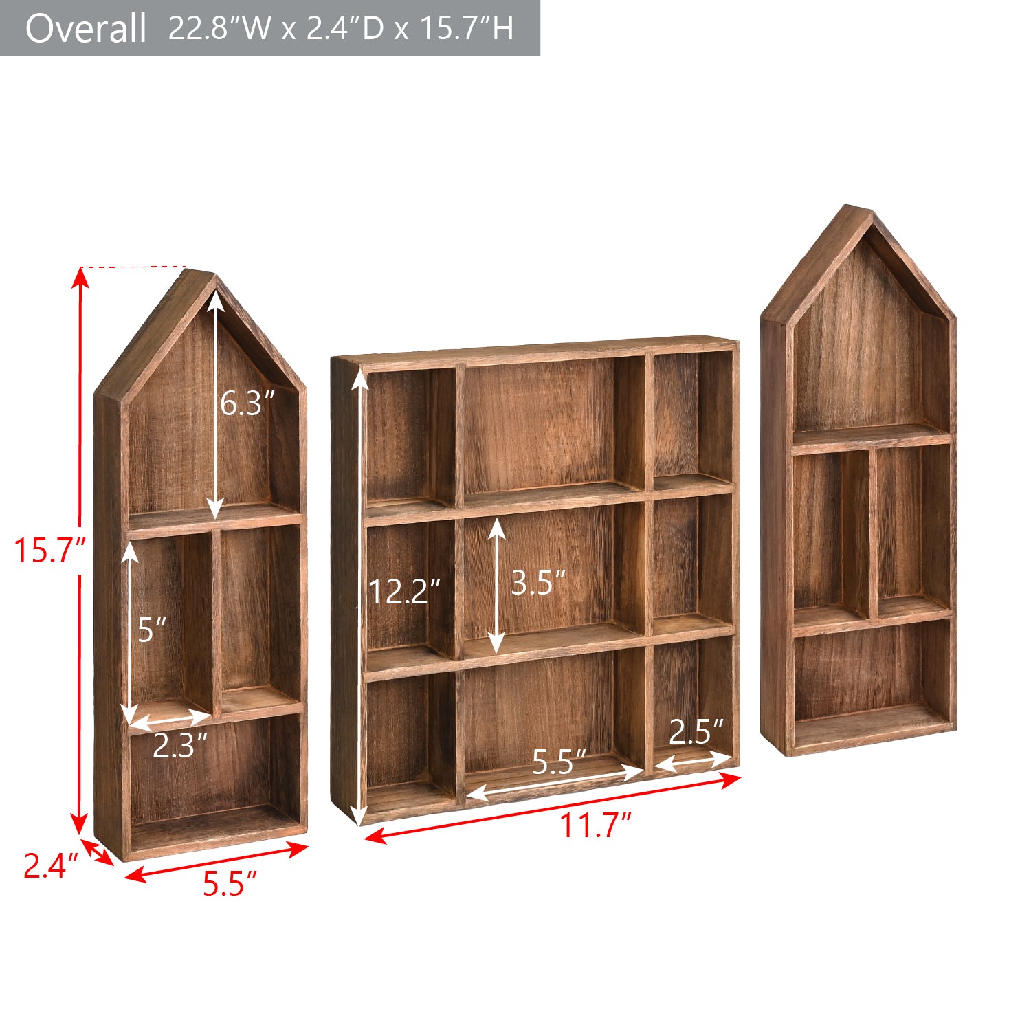 #WD5773 3 Pcs Set Wooden Shadow Cubby Box Display Shelf Organizer Storage Shadow Box for Collectibles