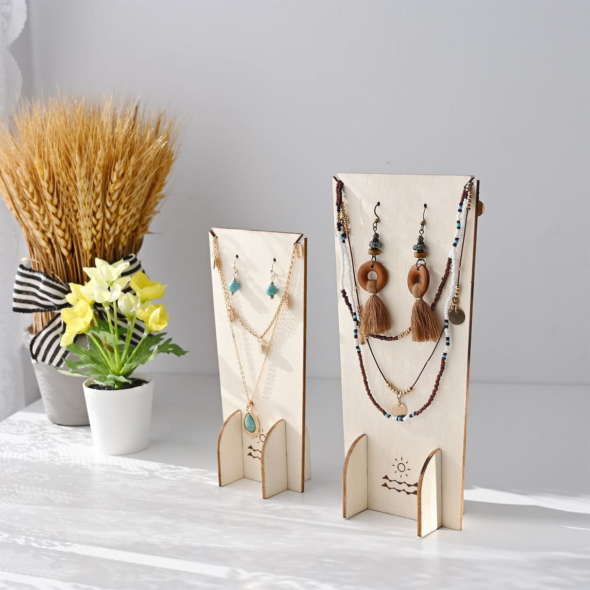 - WOOD JEWELRY DISPLAY: Made from lovely wood, this display board features a fun and eye-catching pattern that’s perfect for showing off your favorite earrings and necklaces! You'll love how it helps your accessories shine and look their best!