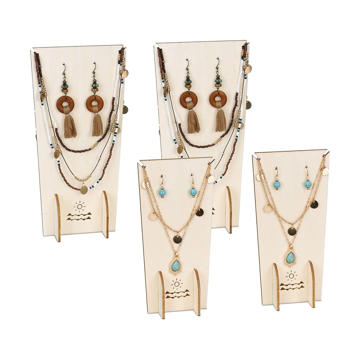 #WDJ3027OK 4 Pcs Set Jewelry Display Stand, Necklace Earring Holder Stand, 2 Different Heights, Countertop Display