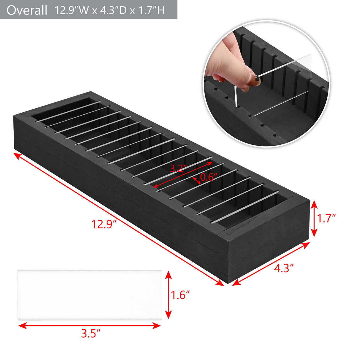 - JEWELRY HOLDER DISPLAY WITH DIVIDERS COMPARTMENT— This organizer enables you to effortlessly view all your jewelry displays, ensuring that each piece is easily accessible and always in sight. It features customizable dividers, allowing you to remove or rearrange them to create the perfect amount of space for your unique collection.
