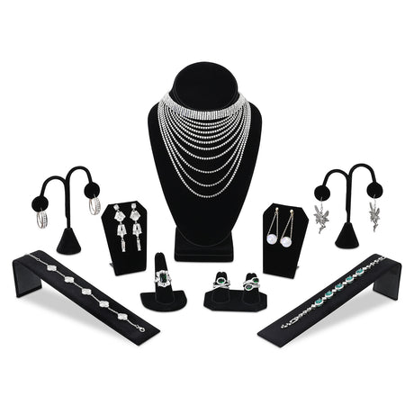 #JWY1203SET 11 Pcs Black Velvet Jewelry Displays Set, Earring Holder, Necklace Display, Bracelet Set