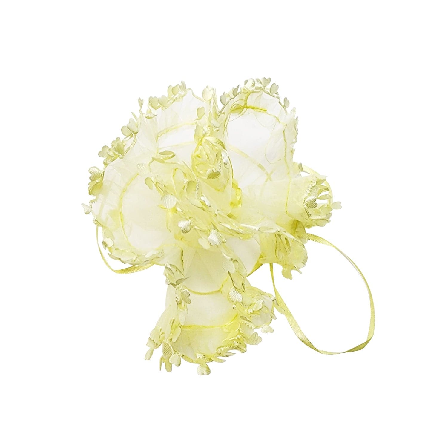 #BX752(YL) Yellow Organza Cinch Pouches with Heart Trim