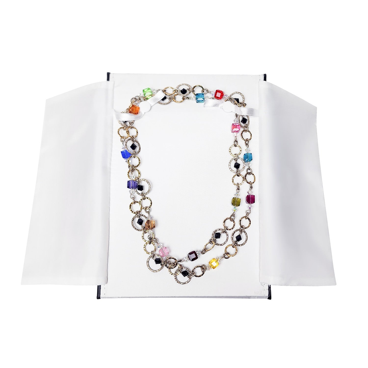 Present your necklaces elegantly with this leatherette necklace folder with satin interior lining. The folder has a snap closure and two snap-on loops for the necklace. Each folder includes a white two-piece packer.