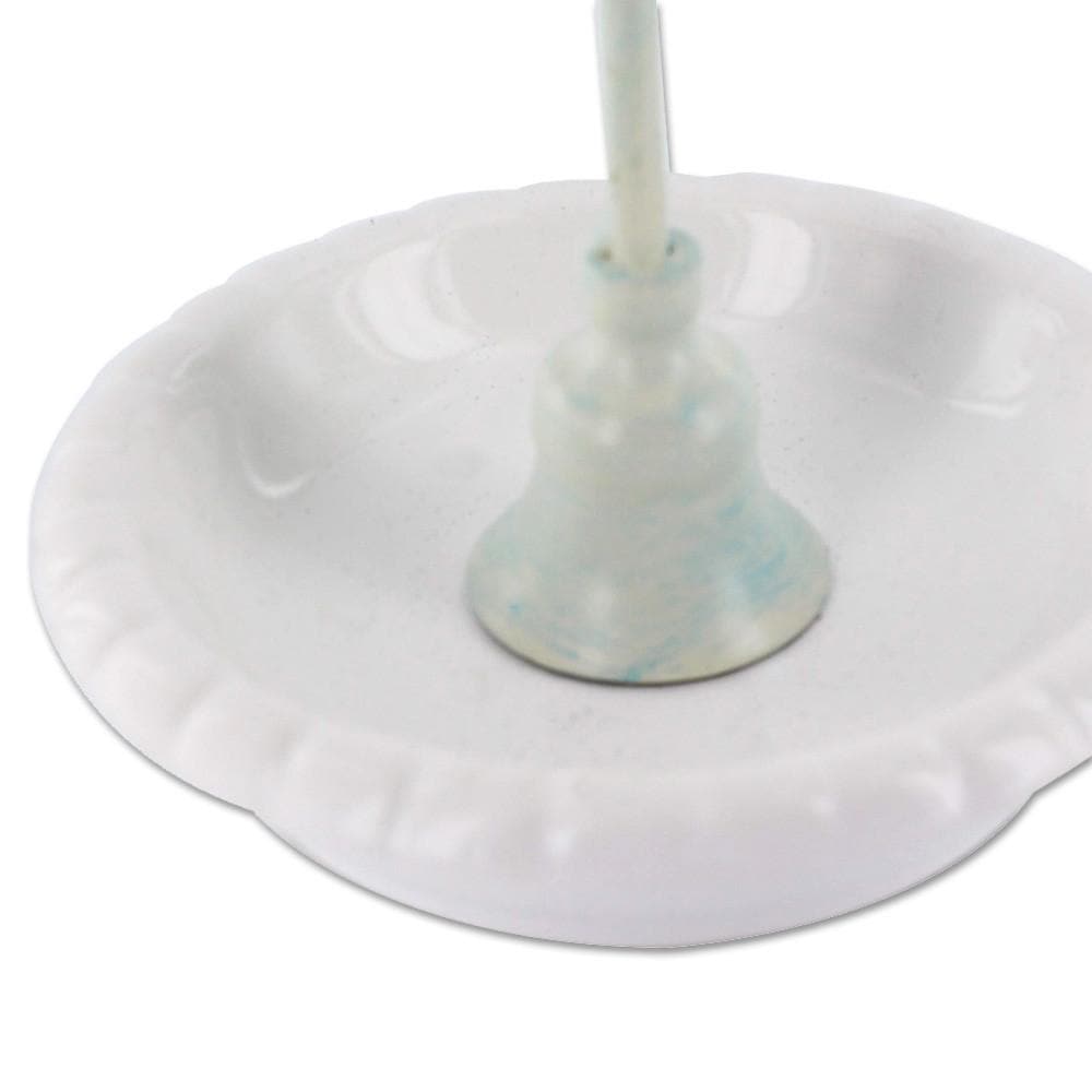 Display your various jewelry with this metal jewelry display. It consists a porcelain base tray and 3 arrows with 39 tiny holes. The off-white with green finish allows the jewelry to shine and sits neatly on a countertop. Jewelry not included.